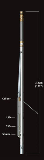 The litho-density tool combines a borehole corrected bulk density measurement with a photoelectric lithology log (Pe). A radioactive source and detectors are mounted in an articulated skid maintained in contact with the borehole wall by a powered backup arm. The arm also doubles as a caliper measurement. The tool may be combined with compensated neutron, focused induction and sonic measurements in a classic ‘quad combo’ configuration.